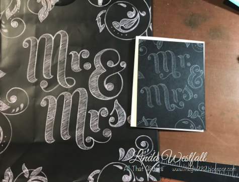 I am making another card to match a gift bag that I bought. This one took me a couple of tries for me to get the desired look I was going for.